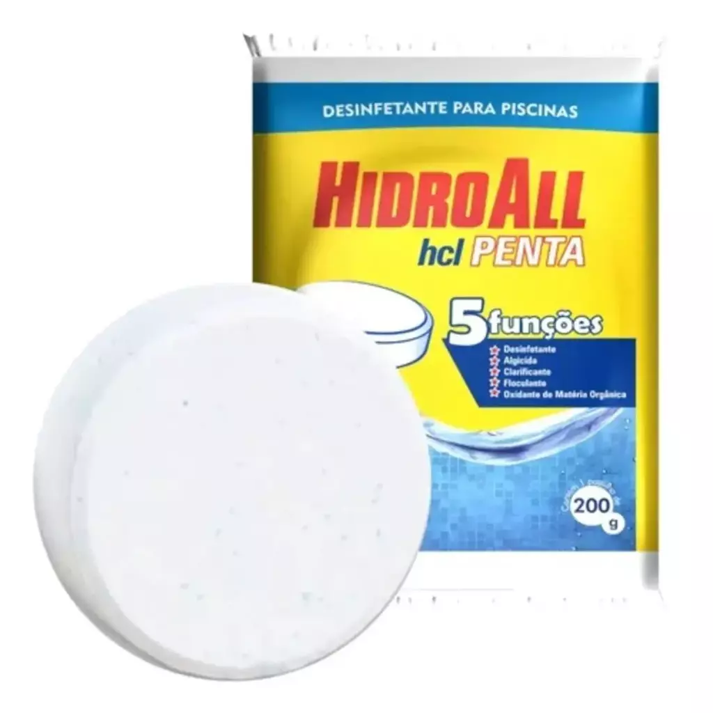 HCL Penta contém estabilizador em sua fórmula que protege o cloro livre da água evitando a perda causada pelos raios solares. HCL Penta em tabletes pode também ser colocado em cloradores flutuantes, sendo que o teor de cloro é controlado através da adição de um número maior ou menor de tabletes no clorador.